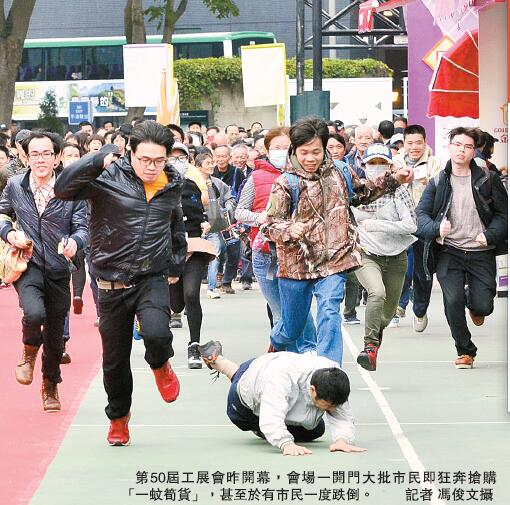 【香港商報網訊】記者何加祺報道:昨日,為期24天的第50屆工展會於維園鳴鑼開市。其中,最吸引市民的「1蚊筍貨」開場數分鐘即被搶購一空,甚至有市民為搶購美的推出的「1蚊洗衣機」在奔跑過程中仆倒,但最終仍欣喜搶購成功;售賣海味的攤位亦人山人海,大批市民爭相搶購「平貨」準備過年。商家表示,港人節日消費力特別高,亦願望花錢購物,相信今年生意額會較往年有增長。