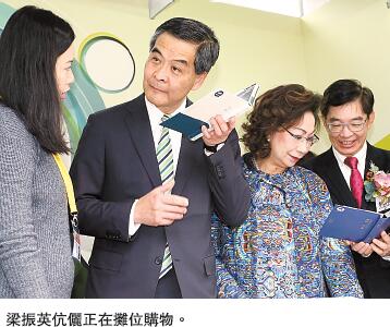 工展會開幕日,行政長官梁振英伉儷及中聯辦主任張曉明出席開幕儀式後,分別來到攤位參觀購物。他們各自購買了健康食品、小禮品等,分別花了2452元及460元。