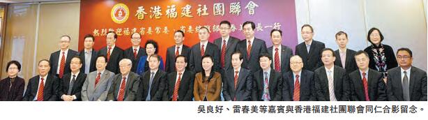 【香港商報網訊】記者于寧寧報道:福建省委常委、省委統戰部部長雷春美一行日前到訪香港福建社團聯會,受到該會同仁的熱烈歡迎。當天,福建省委常委、省委統戰部部長雷春美,福建省委統戰部副部長翁卡,福建省僑辦副主任林澤春,香港福建社團聯會主席吳良好,榮譽主席林廣兆,永遠名譽會長盧文端、林銘森、陳金烈,副主席周安達源、柯達權、許奇鋒,常務副秘書長兼總干事周珊珊,中聯辦協調部處長李文慎等出席主禮歡迎宴會。