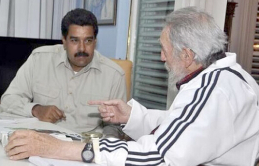 上周输掉议会选举的委内瑞拉总统尼古拉斯·马杜罗2014年9月访问古巴期间,拜见老卡斯特罗