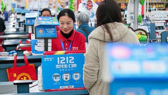 2015年是沃爾瑪首次參加雙十二。何瑛透露,沃爾瑪全國一共400多家門店,共投入了42萬元的補貼,和210萬元的禮品券用于此次活動。沃爾瑪的平均收銀速度從原來的1分鐘左右,變成現在的15-20秒,效率提升了近3倍。