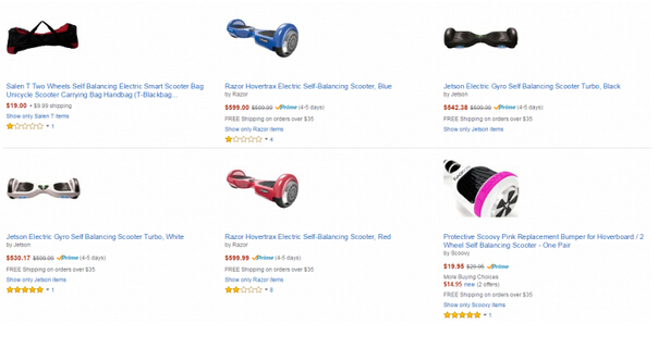 由此,對于一些不符合標準認證的產品,亞馬遜將會進行下架處理,比如備受歡迎的Phunkeeduck。不過,還有一些廠商的產品可以搜索到,比如Razor和Jetson。