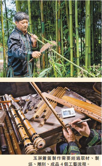 玉屏簫笛也稱「平簫玉笛」,因簫笛上多有雕刻精美的龍鳳圖案,又稱「龍簫鳳笛」。玉屏簫笛是中國著名的傳統竹管樂器,以音色清越優美、雕刻精緻而著稱,它是貴州玉屏當地侗、漢、苗、土家等多民族文化發展的結晶,具有較高的歷史文化和工藝價值。玉屏簫笛,不僅是一種民族樂器,同時也是一件工藝品。玉屏簫笛是貴州的三寶之一,與國酒茅臺齊名。香港商報記者黃慶松通訊員姚磊楊海燕