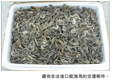 另外,漁護署發言人昨稱,署方上周起與海關於機場空郵中心展開打擊非法入口瀕危物種的聯合行動,本月11日晚上,在一個空運郵件內檢獲一批未附有相關許可證的乾海馬,重約9公斤,署方已檢走乾海馬,并跟進調查案件。任何人士如非按照《保護瀕危動植物物種條例》的規定而進口、出口、再出口或管有附錄II列明物種,一經定罪,最高可被罰款50萬元及監禁1年。
