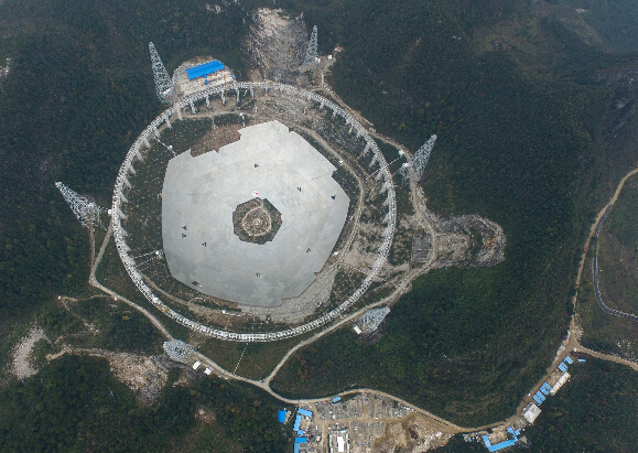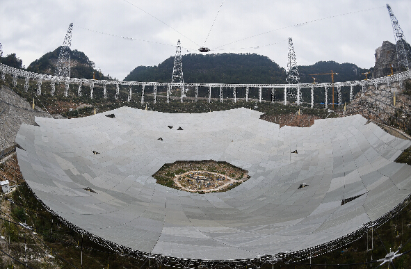 正在贵州省平塘县建设的世界最大单口径射电望远镜——500米口径球面射电望远镜(FAST)目前正在进行反射面面板安装,边长约11米的三角形面板安装已经完成2059块,完成比例达46%。FAST的反射面总面积约25万平方米,用于反射无线电波、供馈源接收机接收,是FAST工程的主线,预计将于2016年4月安装完毕。