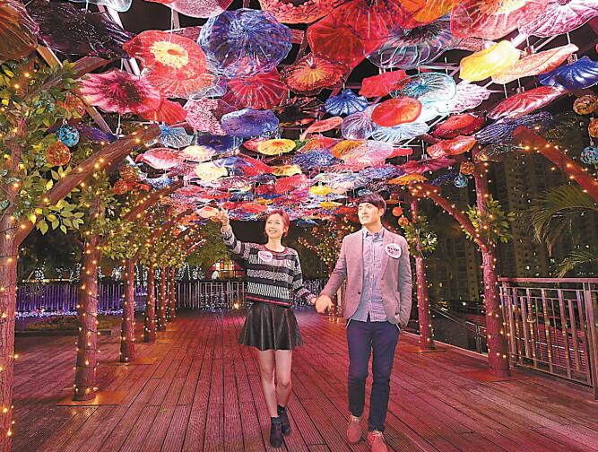 今年聖誕,新城市廣場以閃爍通透的玻璃藝術為主題,即日起至2016年1月15日期間把7樓星光花園布置成亮麗的「璃光大道(Glassy Avenue at Starlight Garden)」,邀請來自世界各地的玻璃藝術巨匠破天荒跨地域交流,攜手築起全港首個全手工玻璃花園,把玻璃素材以精雕細膩的手工,巧制成逾萬個璀璨聖誕玻璃掛飾,點綴於長達18000尺的琉璃花潮,讓人陶醉於紫藍色玻璃的海。香港商報記者奧加