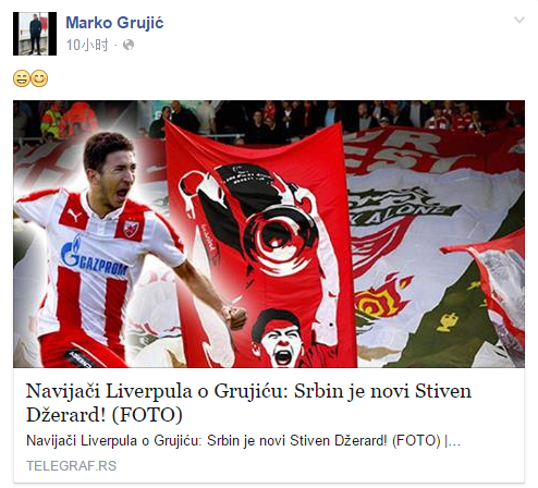 12月17日讯 据外媒《telegraf.rs》消息,利物浦(数据) 在冬窗的首笔签约敲定,贝尔格莱德红星中场妖人格鲁伊奇将在1月份来到安菲尔德,这名塞尔维亚天才将成为克洛普上任后的首笔签约。 格鲁伊奇出生于1996年4月13日,目前年仅19岁,是一名中场球员,外媒将其称为新“新杰拉德”。 今年夏天,年仅19岁的格鲁伊奇帮助塞尔维亚青年队夺得世青赛冠军,他的表现也得到了外界的高度评价。 根据外媒的爆料,目前利物浦已经同格鲁伊奇就转会达成了相关协议,虽然其中的细节不得而知,但是格鲁伊奇本人在脸书上对此进行了确认,这说明,这名塞尔维亚新星将在冬窗加盟利物浦,他也将成为克洛普在安菲尔德履职后的首笔签约。 此前在接受采访时,格鲁伊奇也确认曾经同利物浦进行谈判,“我会努力尊重这家俱乐部(贝尔格莱德红星)、这里的球员以及所有公众。但为了我自己,我必须考虑最有利的环境,在哪里我有最好的上场机会,在哪里能与优秀教练合作。我与利物浦有过谈判,但我没有还没有收到任何协议,我依然是一名红星球员。” 此前,国际米兰切尔西、曼城(数据) 、埃弗顿、凯尔特人、斯图加特、阿贾克斯和安德莱赫特都对格鲁伊奇非常感兴趣,如今利物浦赢得了这名天才争夺战。