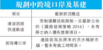 雖然基建工程的執行工序,需要重新檢討,但為了香港的長遠利益,以及避免因為香港與內地「失聯」,從而被邊緣化,香港亦應同時在現時高鐵及港珠澳大橋的基礎上,為未來進一步增建跨境基建,作好前期規劃。事實上,以連接香港西部與深圳西部的港深西部快速軌道為例,該項大計早已被提出,但政府去年9月在《鐵路發展策略2014》指出:鑒於復雜的技術限制,單計建設香港部分的成本,可能超過1100億元(按2013年價格計算),經審慎考慮后,因港深西部快速軌道的整體財務性成疑,故該項目將在《鐵路發展策略2014》以外另作處理。意味該項目暫未放上啟動議程。
