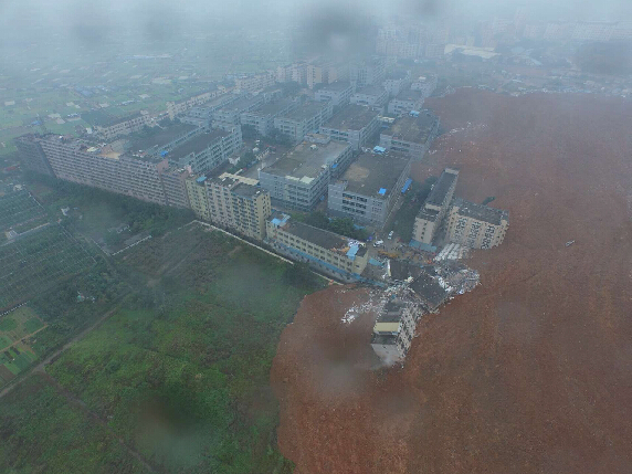 光明新區發生的大型泥土傾瀉面積達到10多萬平方米,淹沒整個紅坳村柳溪工業園區及附近的村。現場目擊者稱,倒塌的建築中,有一整排是一般住宅。