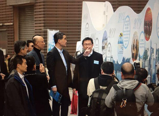 梁振英表示,「净化海港计划」是香港历来最庞大的环保基建项目,两期建造工程历经20年,总费用高达258亿元,而施工对市民影响轻微,令人引以为傲。