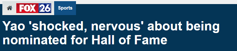 北京时间12月21日,据《福克斯体育》休斯敦站报道,火箭已经正式提名姚明入选2016年的篮球名人堂。对此,姚明感到既激动又紧张。