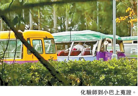 多个政府部门昨日仍在调查该宗严重车祸。警方、政府化验师、运输署验车官等,昨午2时许到达大榄汽车扣留中心,为涉事的两辆汽车包括小巴及货车,在不同方向拍照蒐证;随后数名身穿白袍的化验师,登上小巴上检查,逗留近2小时始离去。