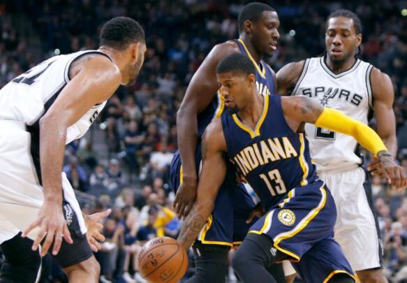 双方易地再战还是打的难分难解,比分始终胶着,阿尔德里奇两罚全中,马刺以61-60仅领先1分。莱昂纳德突破上篮得手,邓肯则在防守端给了乔治结结实实一记大帽。莱昂纳德攻防两端完爆乔治,外线又中后个人单节已经拿到11分。马刺逐渐占据上风,吉诺比利上篮得手后主队领先6分。斯塔基急停命中还以颜色。但迪奥与格林连得5分,三节结束前希尔与米尔斯各自得到2分,马刺以79-70领先9分进入末节。