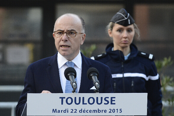 法国警方抓获两名企图实施恐袭的嫌疑人12月22日,在法国南部城市图卢兹,法国内政部长卡泽纳夫(左)在访问一间警察局时发表讲话。