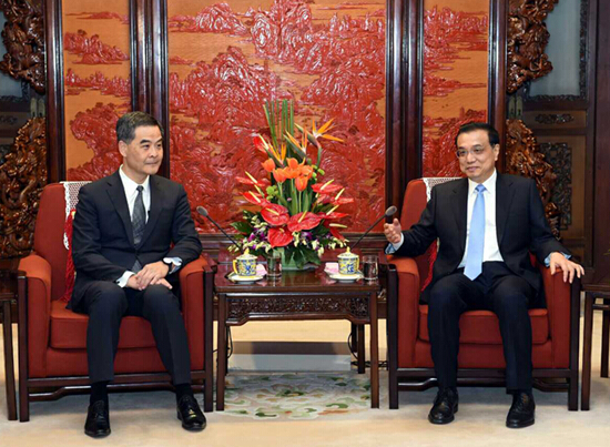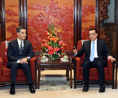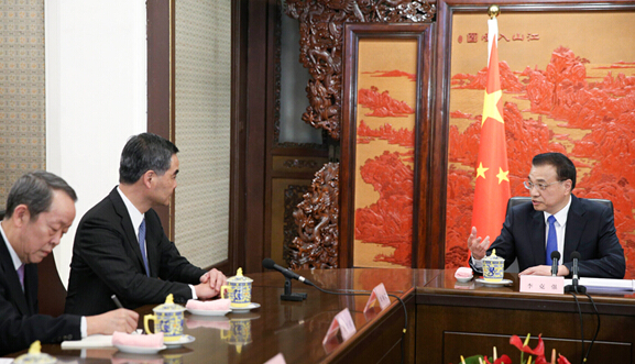12月23日,国务院总理李克强在北京中南海紫光阁会见来京述职的香港特别行政区行政长官梁振英。