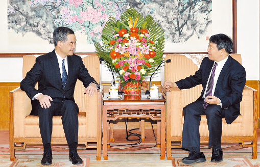 昨早,梁振英和特首辦主任邱騰華、新聞處處長聶德權、特區政府駐京辦主任傅小惠等人,與國家發改委副主任何立峰等多位官員進行會晤。