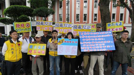 新党王炳忠、唐慧琳等抗议历史课纲微调内容遭到推翻。中评社