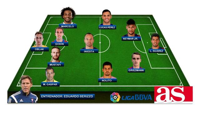中场:伊涅斯塔(数据) (巴萨)、卢卡斯-佩雷斯(拉科)、诺利托(塞尔塔)