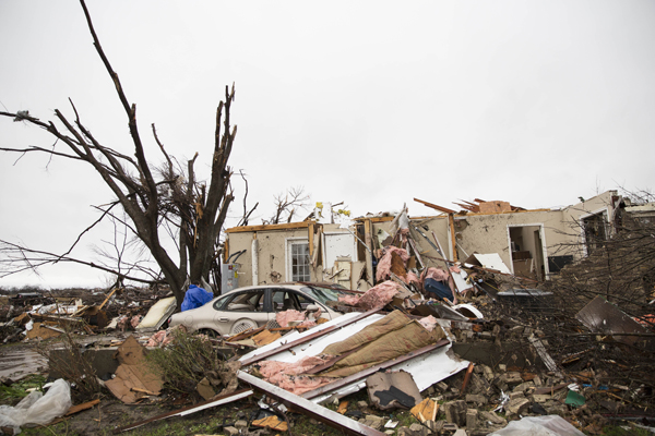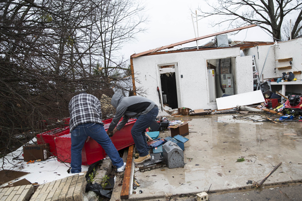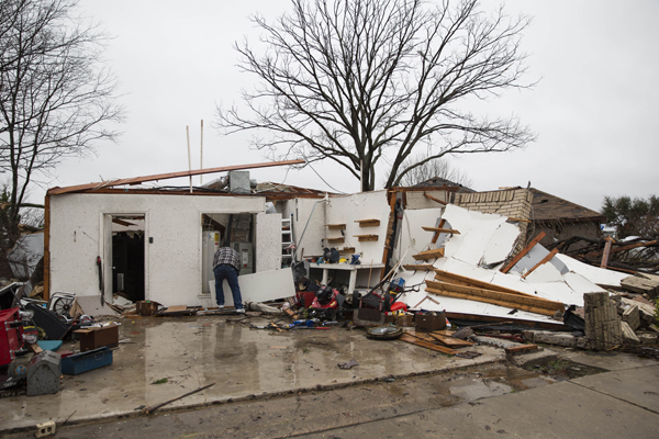 12月27日,在美國得克薩斯州的羅利特,居民查看遭龍卷風損毀的房屋。新華社/法新