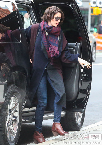 大幂幂的这款Acne围巾非常简洁百搭,她有好几条,灰色款和棕色款都非常好看。