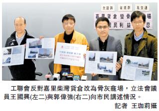王國興續說,政府最初規劃在18區共24選址興建公營骨灰龕安置所,個別項目工程已陸續上馬,其中柴灣歌連臣角靈灰角將增建2.5萬個骨灰龕位,預計於2019年落成,認為區內不存在需求問題,若批準嘉里的申請,把其他地區需求,集中在柴灣區解決,對柴灣居民不公道。他認為,嘉里是「賊佬試砂鍋」,一旦是次申請成功,擔心會將旗下約10個貨倉「照辦煮碗」申請改建,破壞城市規劃。