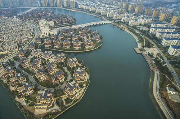 2015年12月30日,記者俯拍江蘇丹陽市丹北鎮界牌新村農民集中居住區,該居住區規模宏大,景觀壯美,遠觀似威尼斯水城。