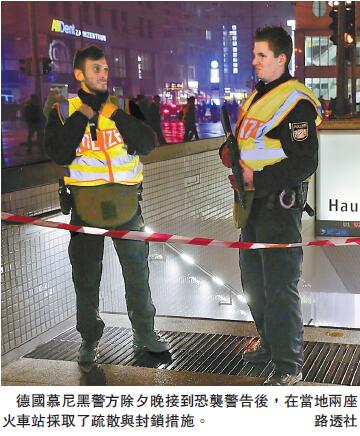 【香港商報綜合報道】當新年的鐘聲敲響之際,西方社會仍籠罩在恐襲陰霾之中。美國聯邦調查局(FBI)在當地時間除夕晚透露,他們前一天在紐約州拘捕了一名25歲男子,此人擬為極端組織「伊斯蘭國」(IS)提供支持,并原計劃於除夕夜「殺害數千名無辜美國平民」。德國警方同在除夕晚表示,有證據顯示有人擬在德國南部大城市慕尼黑策劃恐襲,當地兩個主要火車站的人員已在當晚緊急撤離。