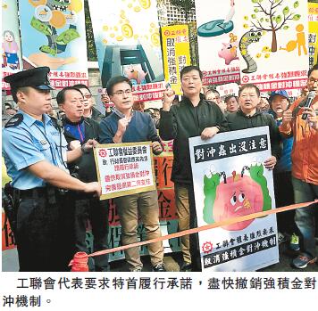 代表稱,強積金由2000年12月實施至今已整整15年,由積金局提供的數據顯示,截至去年第二季,合共有266.6億元被對沖。政務司司長亦以2014年有關強積金被對沖的數據作例子,當中有4.3萬名工友受對沖影響,他們戶主供款部分的戶口竟因長期服務金或遣散費對沖被提走了94%。可見強積金已變成戶主解戶工友的備用錢,協助戶主以低成本甚至是零成本解戶工人,摧毀了強積金作為保障退休生活的功能。工聯會權委要求政府盡快主導取消強積金與長期服務金及遣散費對沖,保障工人退休生活。