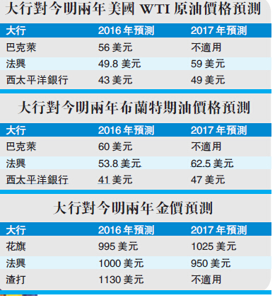 不過,他認為,外圍最壞的時間已過去了,現時只欠缺明顯復蘇的動力,因此預期今年第一、二季油價會再向下,於每桶30美元以下喘定,隨后或會逐漸回升,樂觀地估計今年底可望回升至每桶50美元至60美元左右。