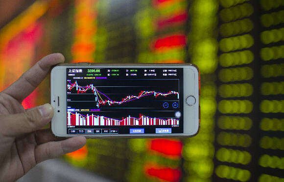 1月4日,沪指午后继续下探跌幅达4.96%,触发熔断机制,A股市场于13:13分开始停牌,13:28时开始继续交易,随后继续下跌,13:34时沪深300指数跌幅触及7%,沪指当日将暂停交易至收市。根据A股熔断机制交易规则,沪深300指数涨跌幅一旦超过5%,全部A股将暂停交易15分钟,14:45分后涨跌幅超过5%,或沪深300指数涨跌幅超过7%时,交易时间将暂停至收市。截至发稿,上证综指报收3296.66点,跌242.52点,跌幅6.85%,成交2409亿元;深成指报收11630.9亿元,跌1033.96点,跌幅8.16%,成交3553亿元。图为海口股民使用手机关注股市行情。