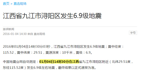 @澎湃新闻:此前澎湃客户端今日推送新闻称,江西九江浔阳区发生6.9级地震。此信息为地震台网自动后台录入信息,后经编辑人工核实,此信息不实,向各位用户致歉。
