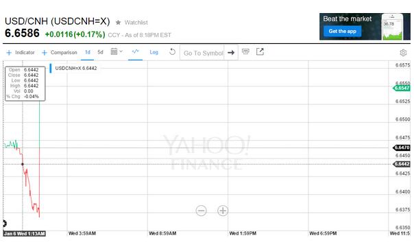人民币中间价再跌145点 离岸人民币应声大跌200点