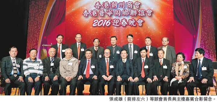 張成雄主持了開幕儀式并致辭,他表示,香港普寧同鄉聯誼會是在莊世平先生的親切關懷和指導下成立的。同仁團結友愛,同心同德,不但為維護香港的繁榮穩定出力,更一直為促進家鄉普寧經濟發展而努力,受到香港各界、普寧領導和鄉親的贊賞和肯定。此次聯誼會很高興邀請普寧鄉親與我們一同迎接2016年的到來,他代表香港普寧同鄉聯誼會向香港市民和普寧鄉親拜早年,祝香港新年興旺,家鄉經濟繁榮,各位鄉親萬事勝意。