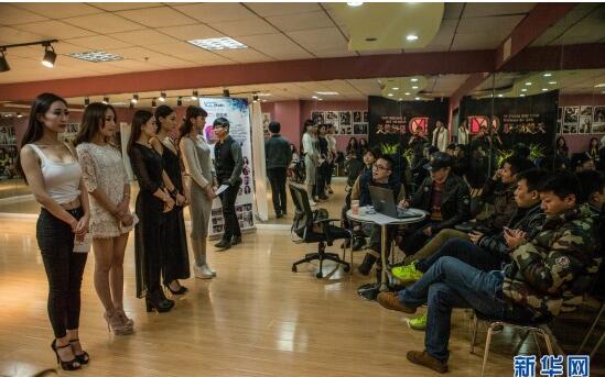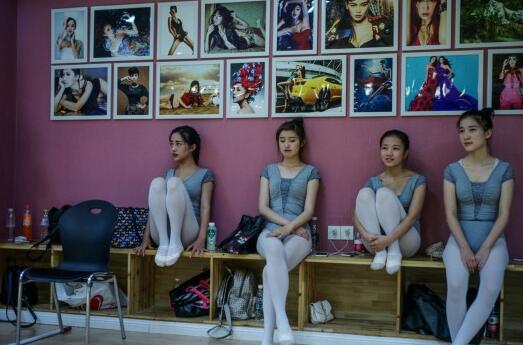 培训室内,女孩们在接受形体训练。墙面上挂满了从这里走出去的各种模特,很多来培训的女孩希望自己可以通过这条路实现自己的价值,为生活积累财富。