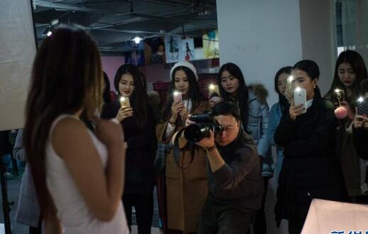 化妆课上,女孩们都要面对镜子而坐,老师们会在身后逐一观察指导。杨沫儿有1.68米,读播音主持专业是父母的愿望,但她喜欢拍摄,也不介意往平面模特方向去发展。