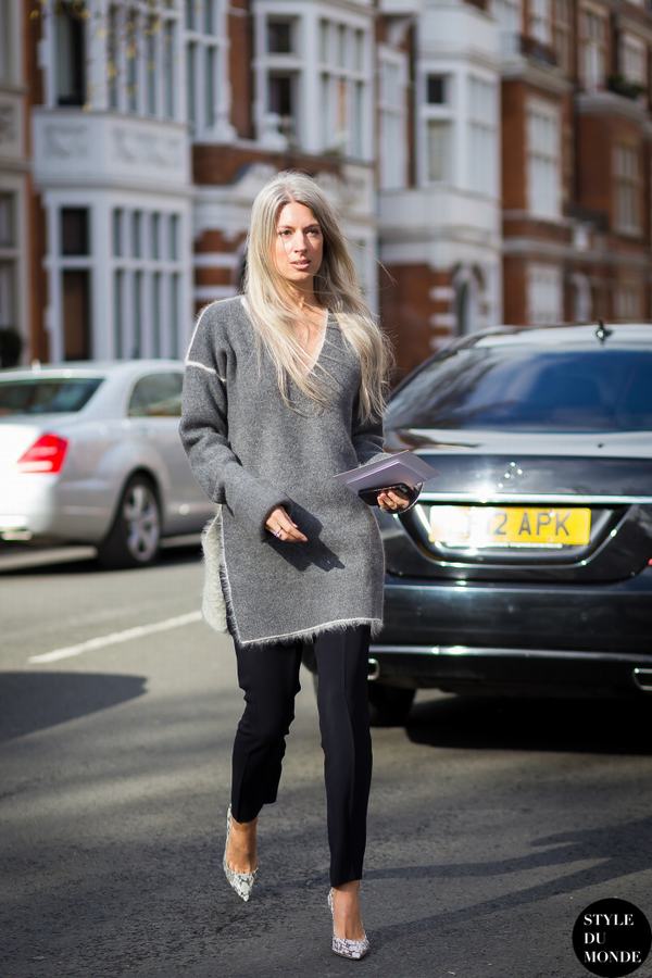 在复古风回潮的今年也让高领毛衣再次火了一把,小小的高领不只保暖而且很时髦,几乎是冬天必备的一件基础单品。不过对于下半身有些小肉肉的姑娘来说最好选择短款的高领毛衣哦,尤其是亚洲女生个头不高的话要慎选肥大款式,虽然穿出来特别有范儿但并不适用。或者将贴身的高领毛衣塞在半身裙里也能重塑身材比例,看起来腰肢也会更加纤细。
