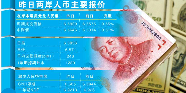 昨日美元兌人民幣央行中間價定在6.5646,較上個交易日大跌332個點,較前日收盤價亦低超70個點;即期開盤后隨即大跌至6.5945的近5年新低,年初至今最大累計跌幅已達1.53%。