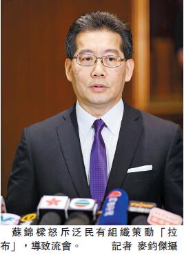 蘇錦梁會后直言,流會浪費議會、議政時間,更語氣強硬地指出:「非常遺憾泛民有組織地策動『拉布』,導致流會情況再出現。」他不點名批評,要求點算人數的議員最后步出議會,做法消極,質疑這是否合乎香港的福祉;他同時贊揚建制派議員盡忠職守地開會。