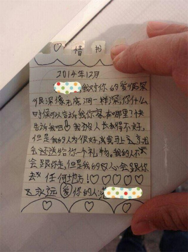 这封情书语言稚嫩,让人看完忍俊不禁。“我对你的爱很深很深,像无底洞一样深,你什么时候可以告诉我你家在哪里?快告诉我吧!我人长得不好,但是我的人为(应为为人)很好,我马上就会送给你一个礼物。我的人不会跟你走,但是我的心会跟你去任何地方!”