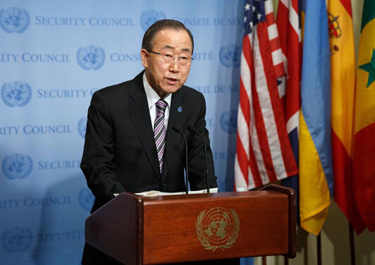 1月6日,在美國紐約聯合國總部,聯合國秘書長潘基文向記者發表講話。 聯合國秘書長潘基文6日譴責朝鮮舉行核試驗,呼吁朝鮮立即停止此類活動。 新華社記者李木子攝