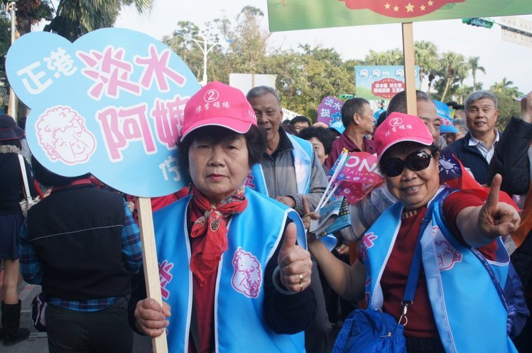 “要為臺灣、社會安定參選領導人,不是為個人。”朱立倫口中所說的“淡水阿嬤”、80歲喬林如明,今天也現身在游行隊伍最后面,與7、80名穿著“淡水阿嬤”藍色背心的阿公、阿嬤,由新北市淡水區民生里長里長陳李明緣陪同,手持“正港淡水阿嬤佇這啦”標語牌,一起參加大游行,眾人爭相與淡水阿嬤合影。