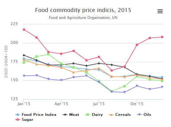 据联合国粮农组织(FAO)数据,2015年,全球粮食价格连续第四年下跌,且创下7年最大跌幅。