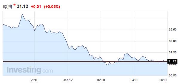 美国原油期货跌1.75美元,结算价报每桶31.41美元,为2003年12月来最低,最新报价为每桶31.12美元。