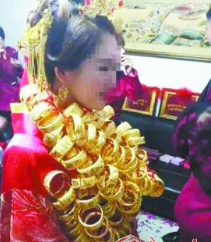 百万礼金、近百金镯、超级跑车、帝王装扮