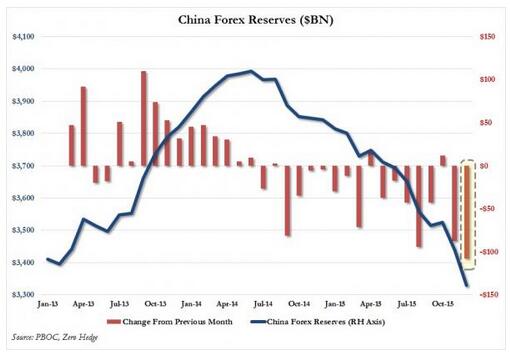有一件事情是肯定的:人民币将会继续贬值。一个月前,ZeroHedge预测人民币将至少贬值15%,上周,彭博社也表达了相似的观点。随着人民币持续走贬,中国将面临的资本外流将会更加严重,最坏的情况是:中国外汇储备将下降至少6700亿美元。中国的银行已被迫认识到,公司债[0.04%]务违约问题将会带来大量不良贷款,而这主要是在大宗商品领域。