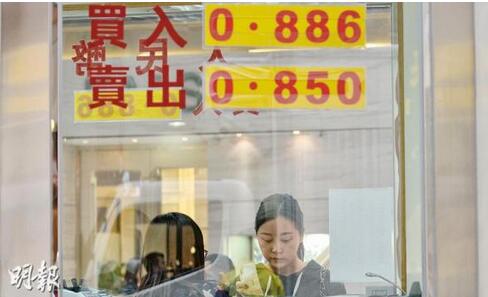 贴有人民币兑港币买入和卖出价的货币兑换店