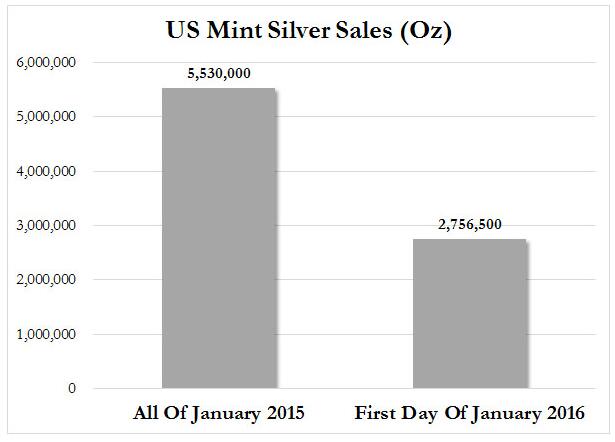 无需多说,如果2016年第一天的需求继续到1月底的话,那么2016年1月的白银销售量将创下新的空前记录。