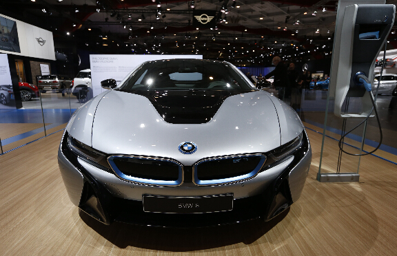 比利時布魯塞爾第94屆歐洲汽車展媒體日上的寶馬i8充電汽車。