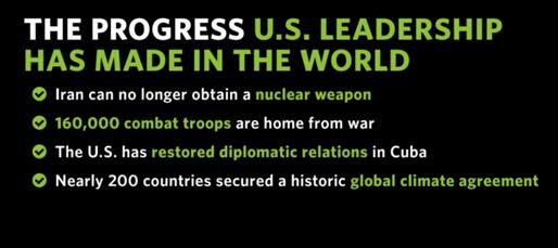 奥巴马论证道:“美国在21世纪的领导,并非在‘忽视全世界’和‘占领和重建崩解的社会’中二选一。领导意味着明智地运用军事力量,并且以正义的使命重整世界。这意味着将我们的对外支援视作国家安全保障的一部分,而不是做慈善。”
