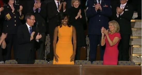 刚入场,奥巴马就向国会议员和官员握手问候,互道新年快乐。随后在演讲开始时,奥巴马开玩笑说:我会尽量说的短一些。果然,大约一个小时之后奥巴马就讲完了。